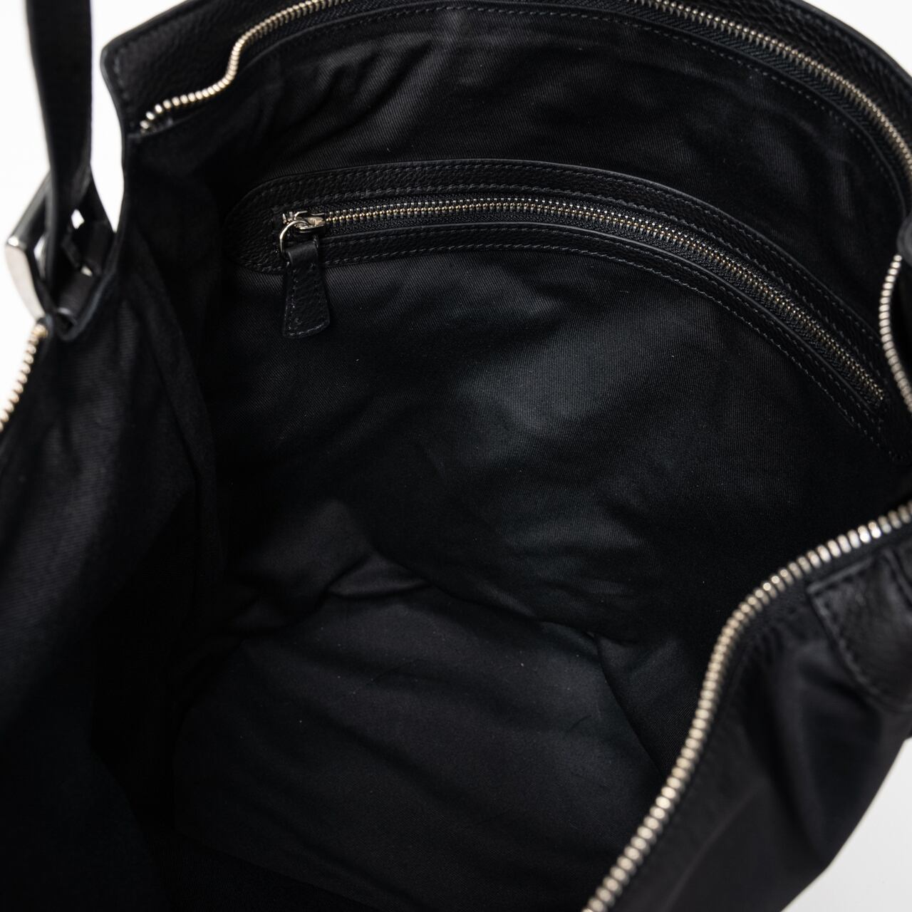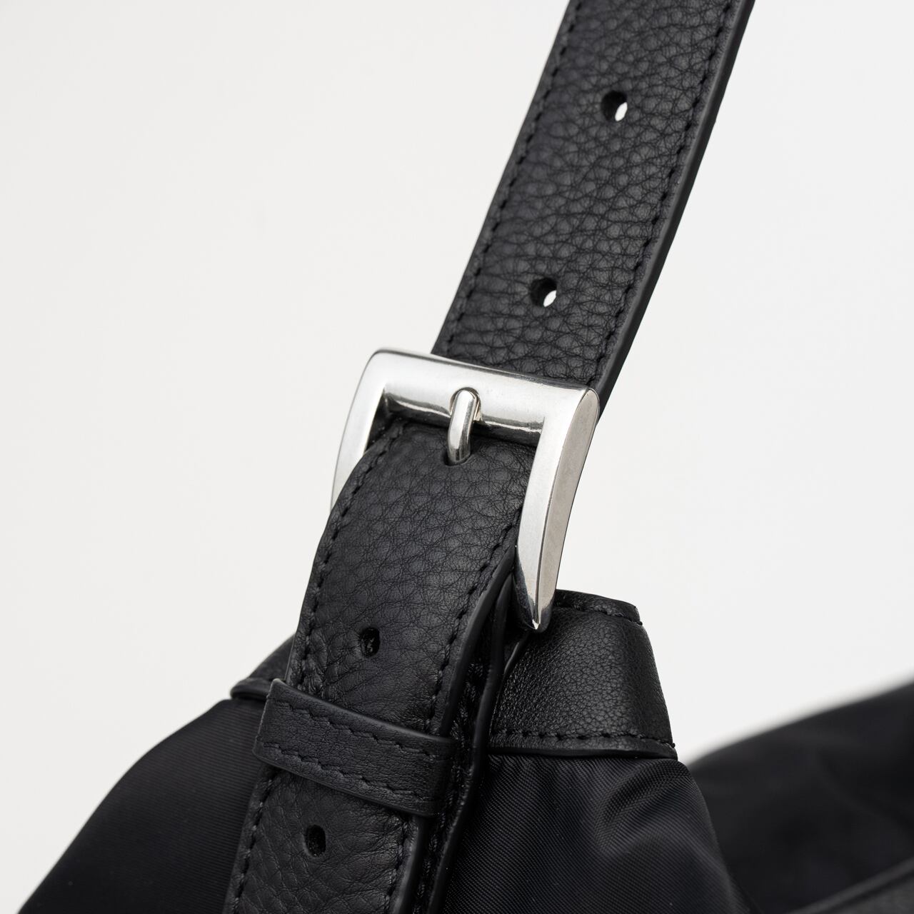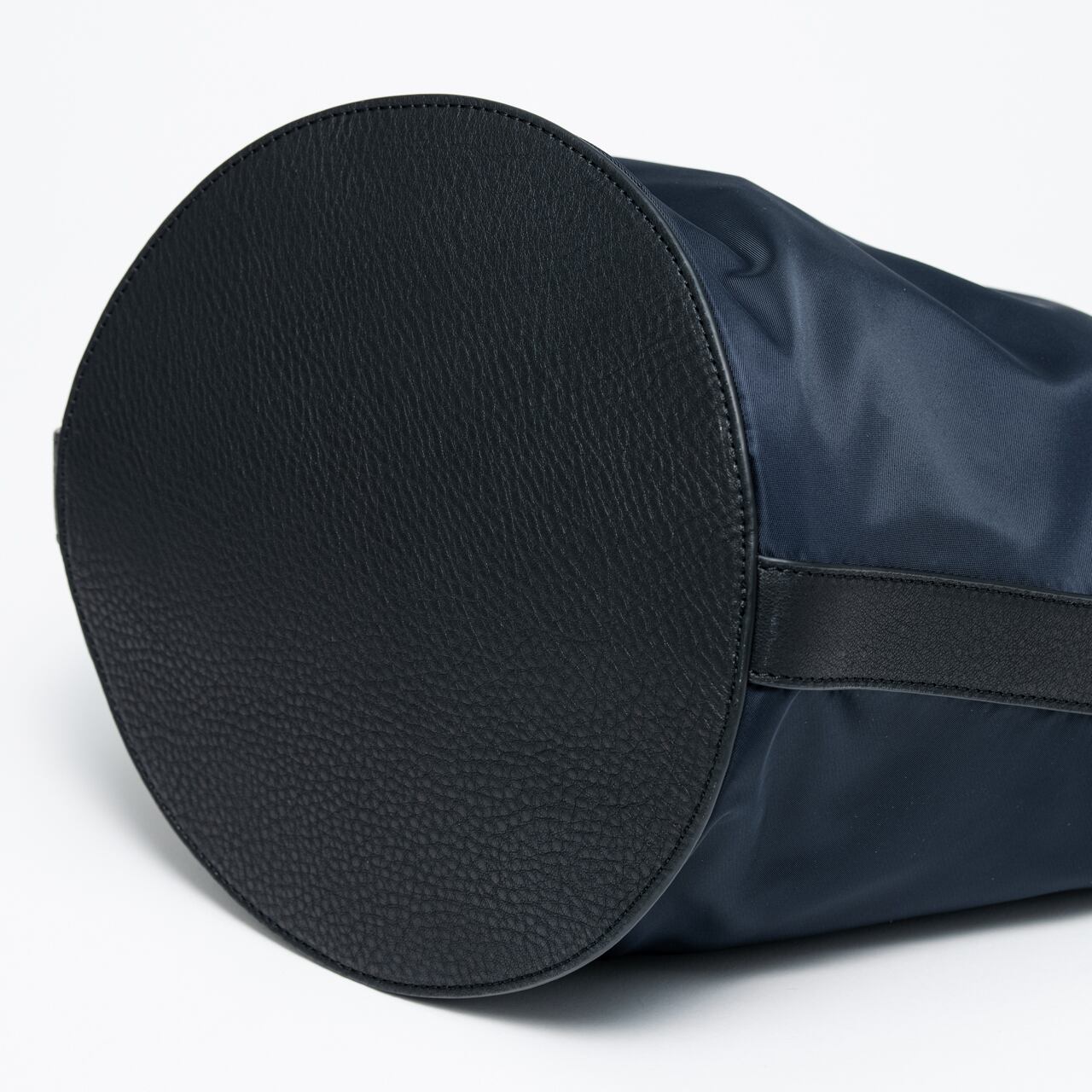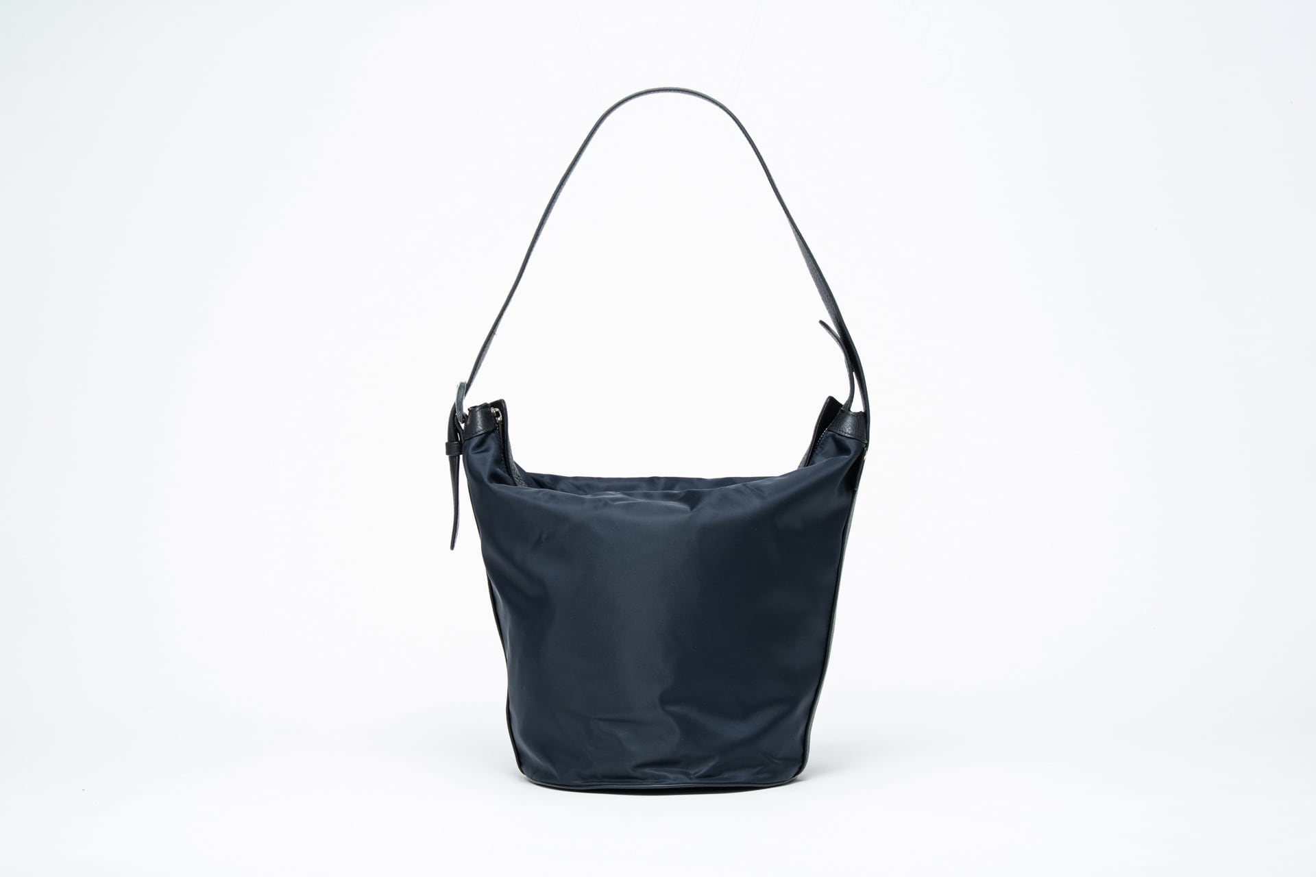 高密度のイタリアンナイロンと天然シボが上品さを感じさせるレザーのコンビネーションにより上品な印象に仕上がったバケツ型ショルダーバッグです。