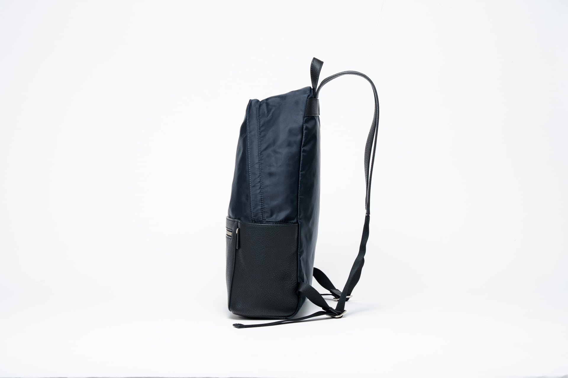 高密度のイタリアンナイロンとレザーのコンビネーションにより上品な印象に仕上がったバックパックです。
