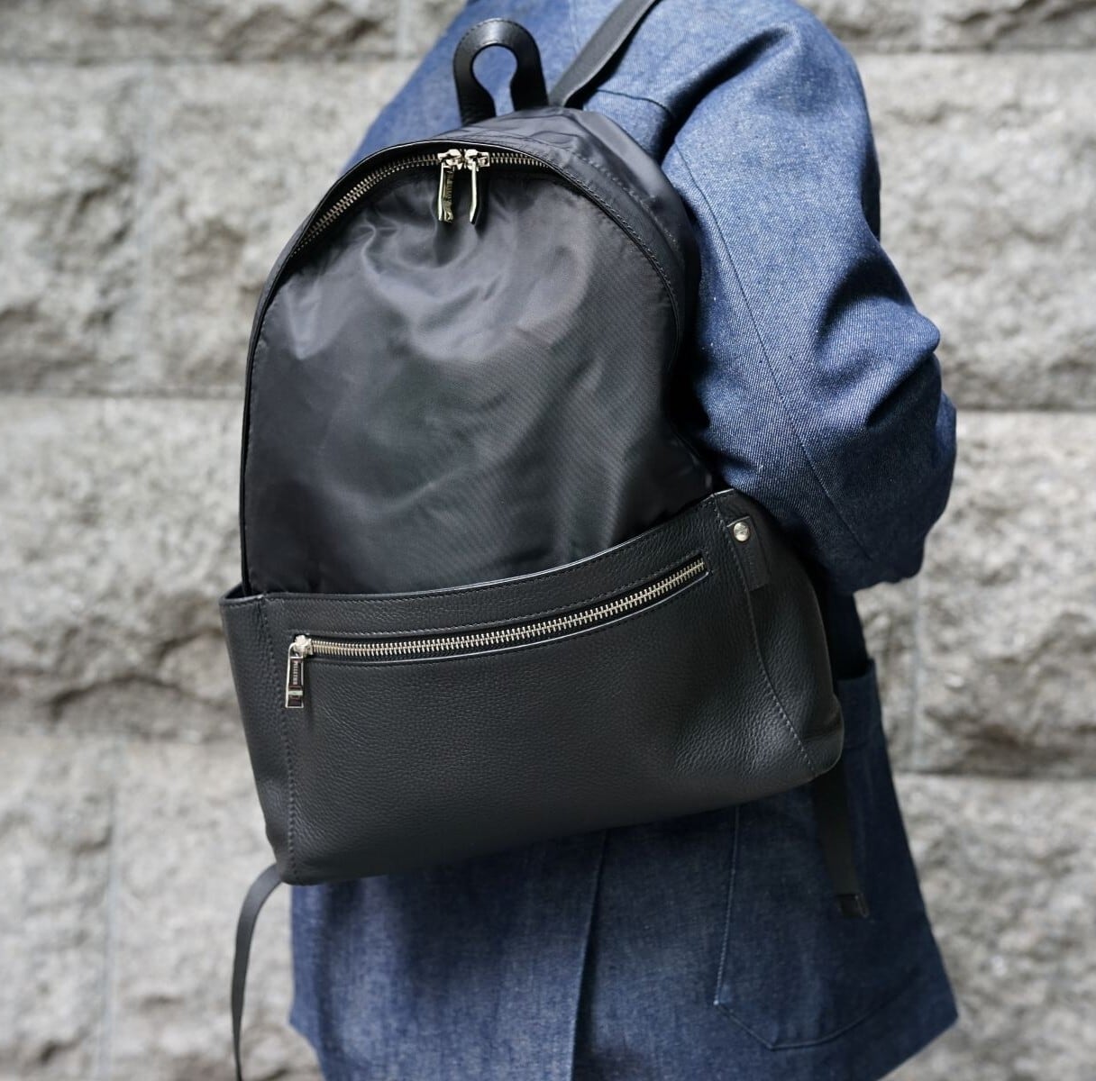 高密度のイタリアンナイロンとレザーのコンビネーションにより上品な印象に仕上がったバックパックです。